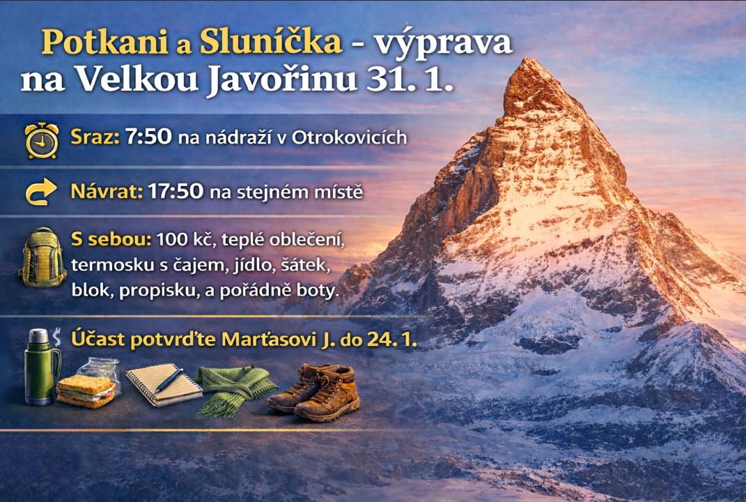 Milé Hvězdičky,od pátku 16. 1. 2026 se na chvíli stěhujeme ze zimy do tepla. :) Zkoušky dětské scholičky budou probíhat v ... pokračovat ve čtení