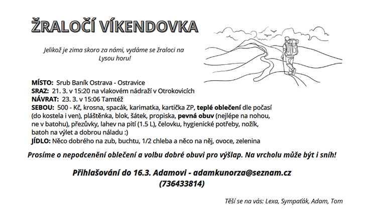 Ahoj! Právě na webu přistálo druhé číslo oddílového newsletteru, který si můžeš přečíst ZDE. Nově najdeš všechna čísla v záložce ... pokračovat ve čtení