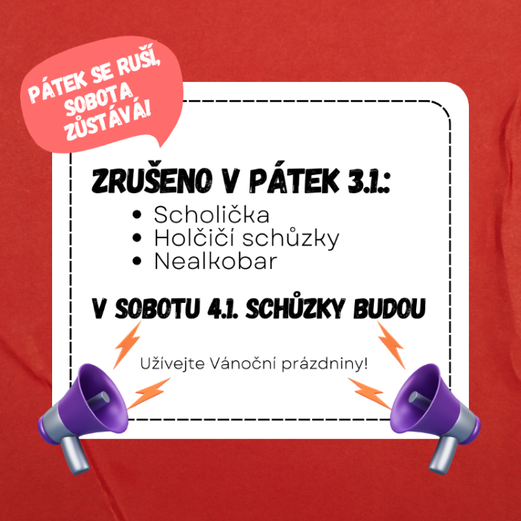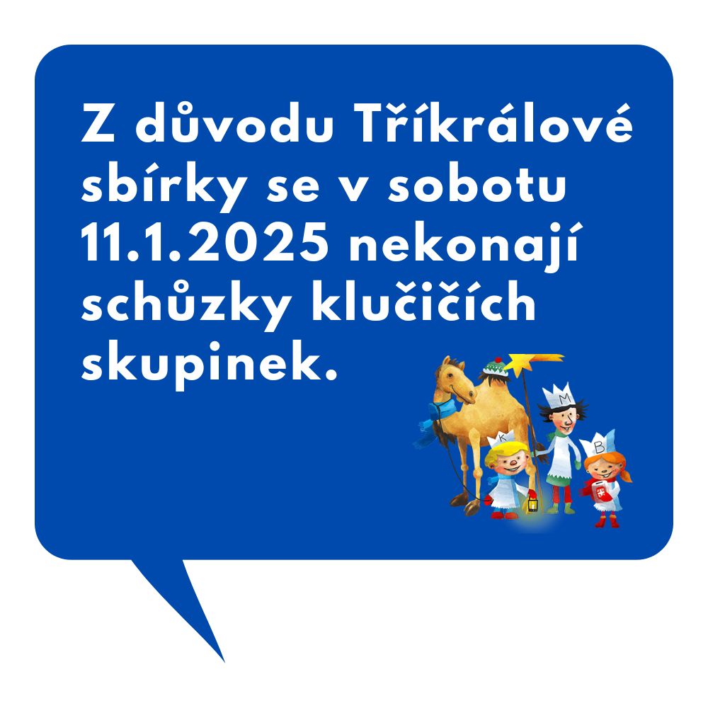 Z důvodu Tříkrálové sbírky se v sobotu 11.1.2025 nekonají schůzky klučičích skupinek. ... pokračovat ve čtení