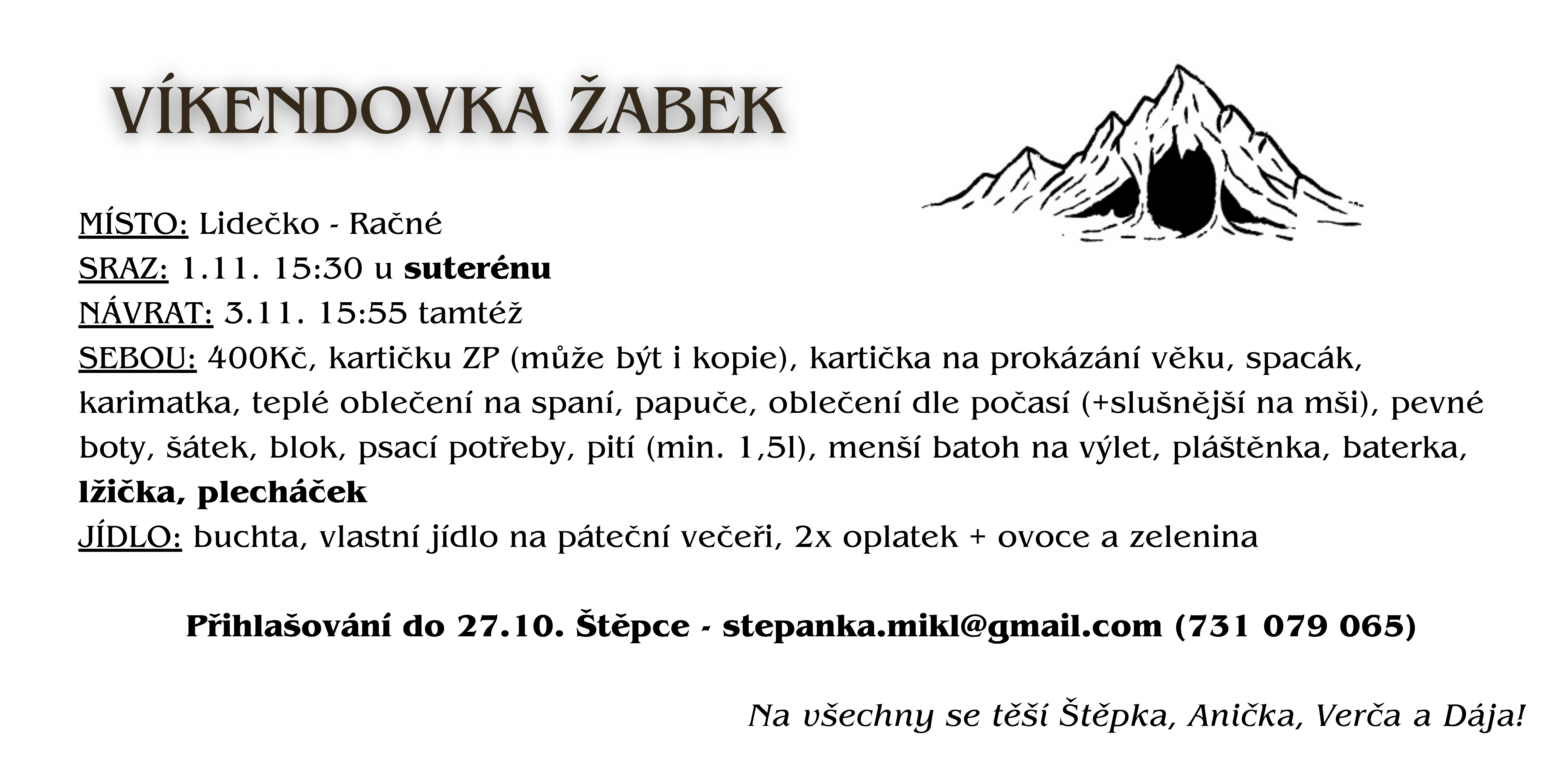Všechny žabky zveme na podzimní víkendovku! ... pokračovat ve čtení