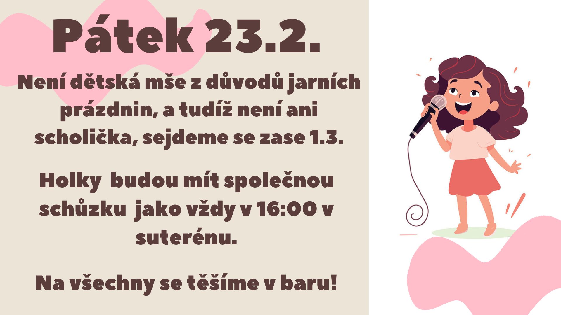 Tento pátek máme jarní prázdniny, což znamená, že dětská mše není, ale nebojte se, holky se potkají na společné schůzce a všichni jsou zváni do baru. ... pokračovat ve čtení
