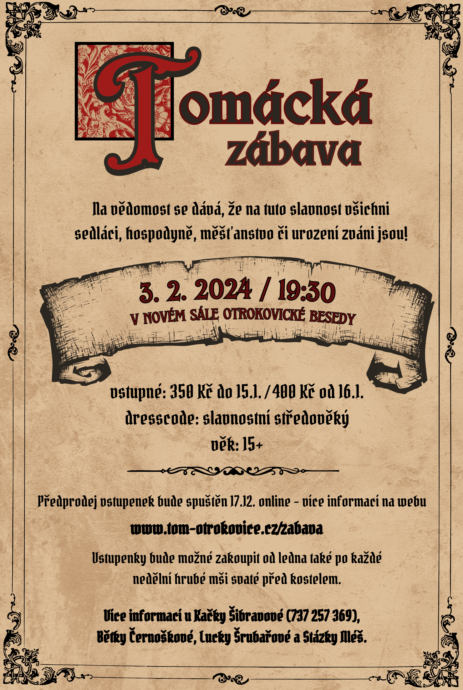 Na vědomost se dává, že od tohoto úterý se lístky na letošní středověkou TOMáckou zábavu zdražují. Pokud svůj ještě nemáte, ... pokračovat ve čtení