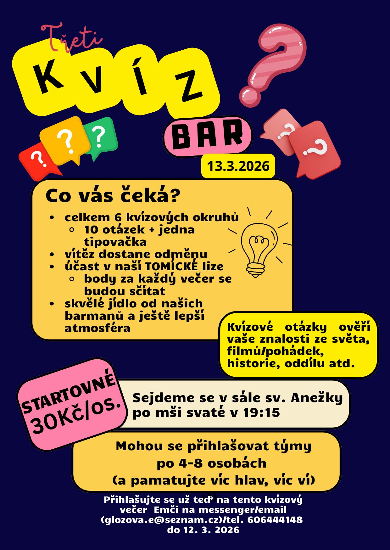 Třetí kvízový večer je tady! Počítáme se všemi stálicemi naší Tomícké ligy. Prosíme ale o včasné nahlášení počtu lidí ve ... pokračovat ve čtení