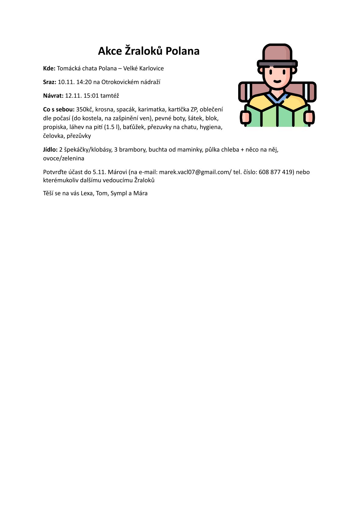 Jelikož nebude mše svatá v pátek 20.10., posouváme bar hned po holčičích schůzkách! Těšíme se na vás už od 18:30 H+Š+J+L ... pokračovat ve čtení