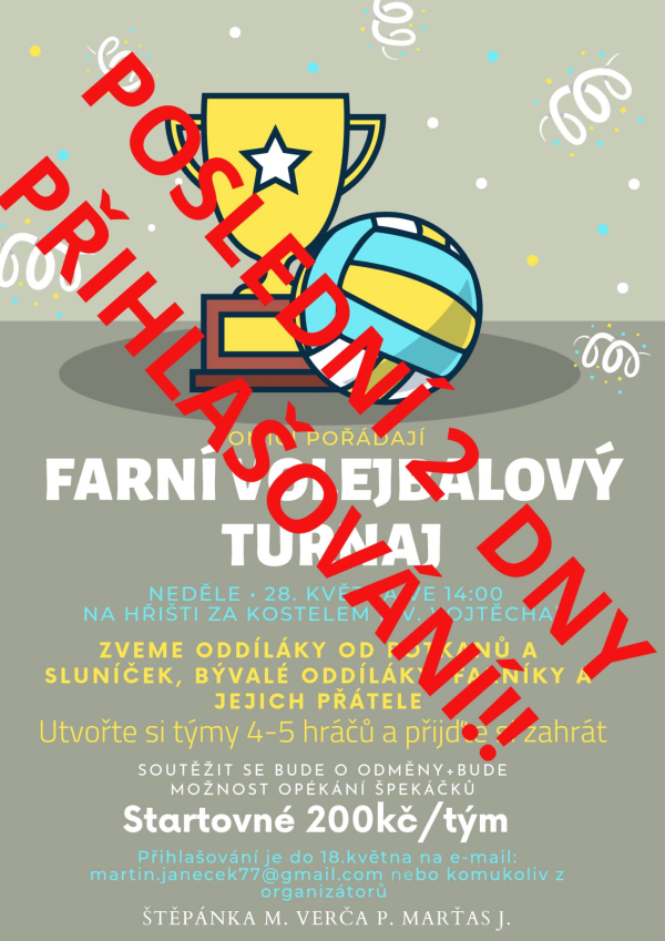 Připomínáme, že se nezadržitelně blíží termín splatnosti tábora a odevzdání přihlášek, což je tradičně 31. května. Přihlášky můžete odevzdat ... pokračovat ve čtení