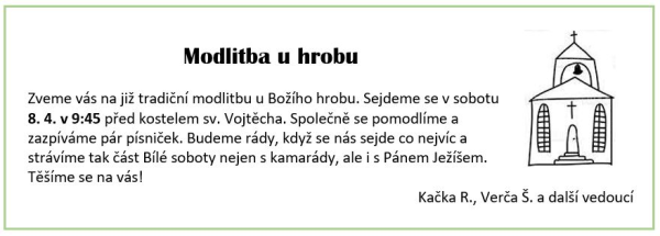 Zveme všechny holky, rodiče, prarodiče, kamarády a další na společnou modlitbu u Božího hrobu. ... pokračovat ve čtení
