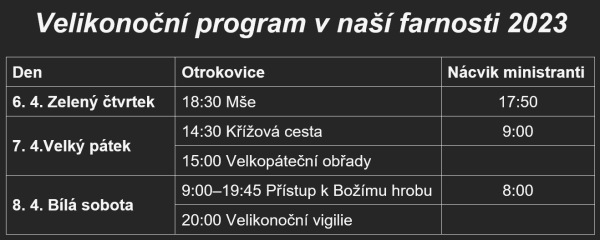 Důležité informace především pro kluky ministranty. Budou Velikonoce a s tím nás čekají i nácviky ministrantování. Doufáme, že vás dojde ... pokračovat ve čtení
