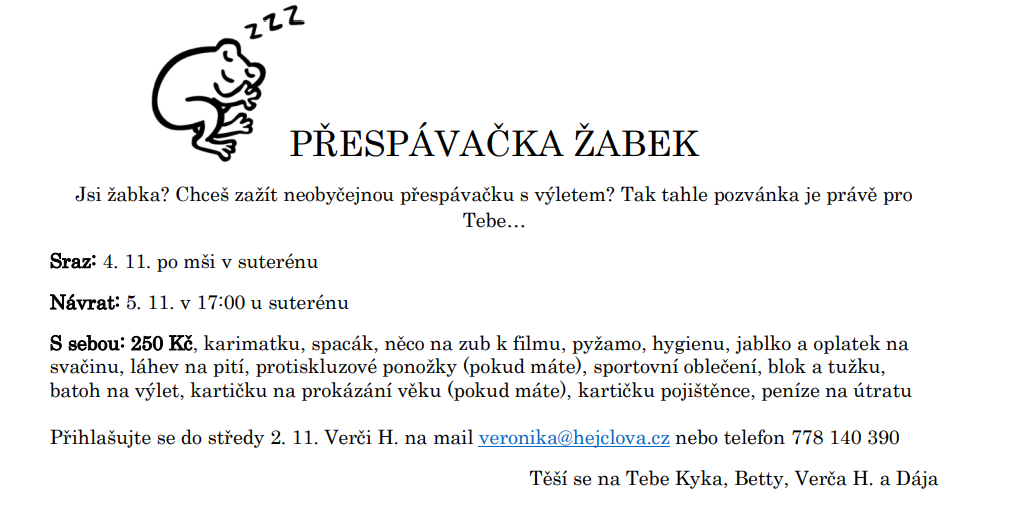 Z důvodu státního svátku NEBUDOU tento pátek 28. 10. 2022 schůzky holek ani scholička. ... pokračovat ve čtení