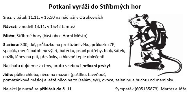 Sbalte si saky paky, jedeme do Stříbrných Hor! Nezapomeňte se přihlásit do 5.11. ... pokračovat ve čtení