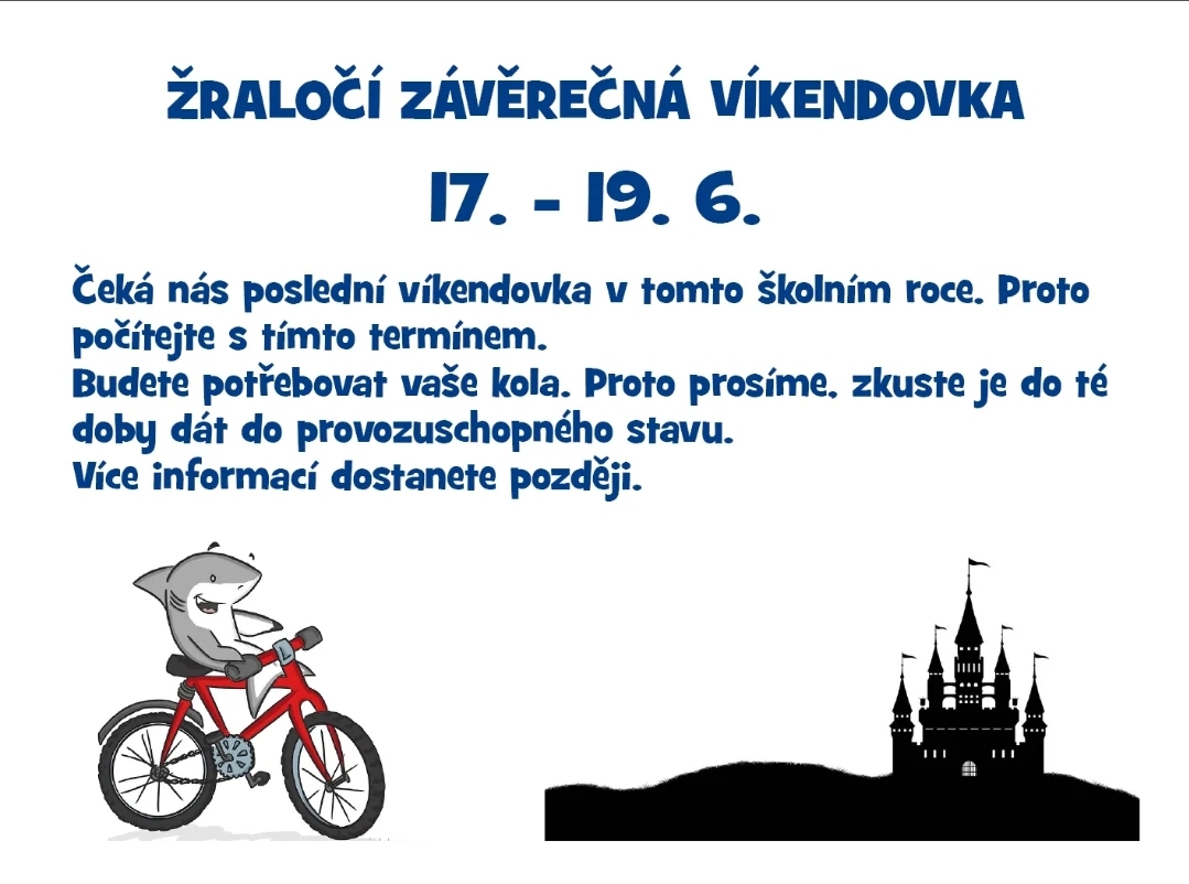 Pozor Žraloci, zapište si termín akce. Pojedeme na kola, tak si je dejte dokupy. ... pokračovat ve čtení