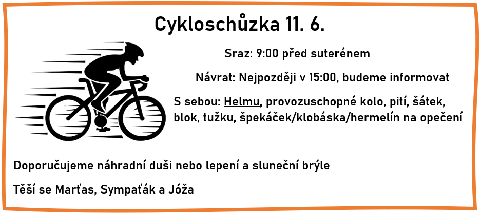 Rychlopozvánka na sobotní schůzku. Kdo přijde bez kola, nebude se moct zúčastnit. Pokud by někdo měl problém s kolem (nebo žádné neměl), dejte včas vědět! ... pokračovat ve čtení
