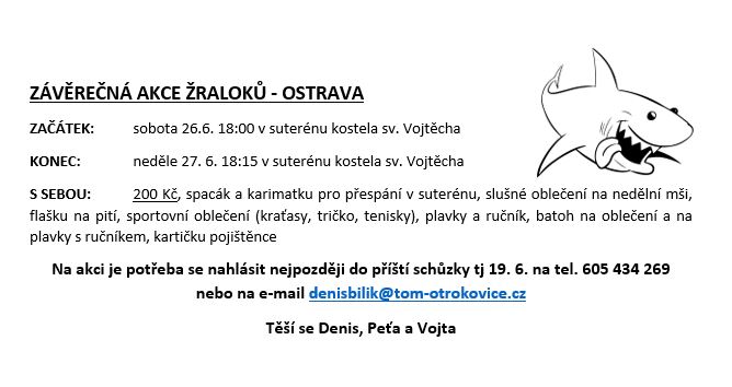 Ani Žraloci nezůstanou pozadu se závěrečnou akcí! Akce se bude konat 26.-27. června. Klasická schůzka 26. června NEBUDE! Sejdeme se ... pokračovat ve čtení