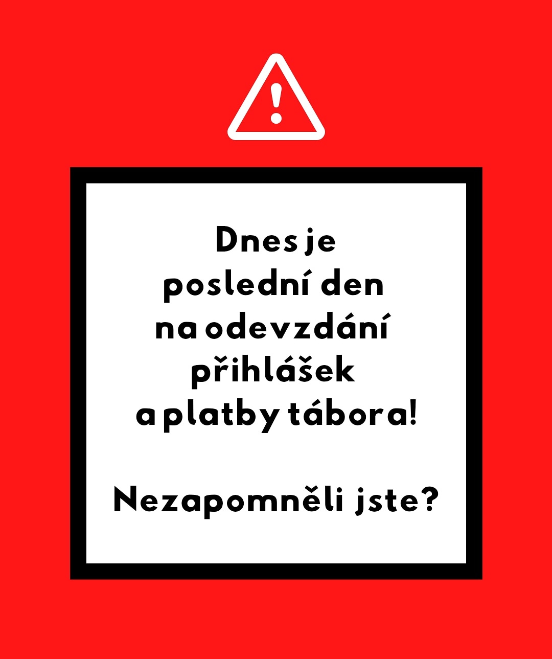Pozor pozor, dnes je poslední den na odevzdání přihlášek a platby tábora! ... pokračovat ve čtení