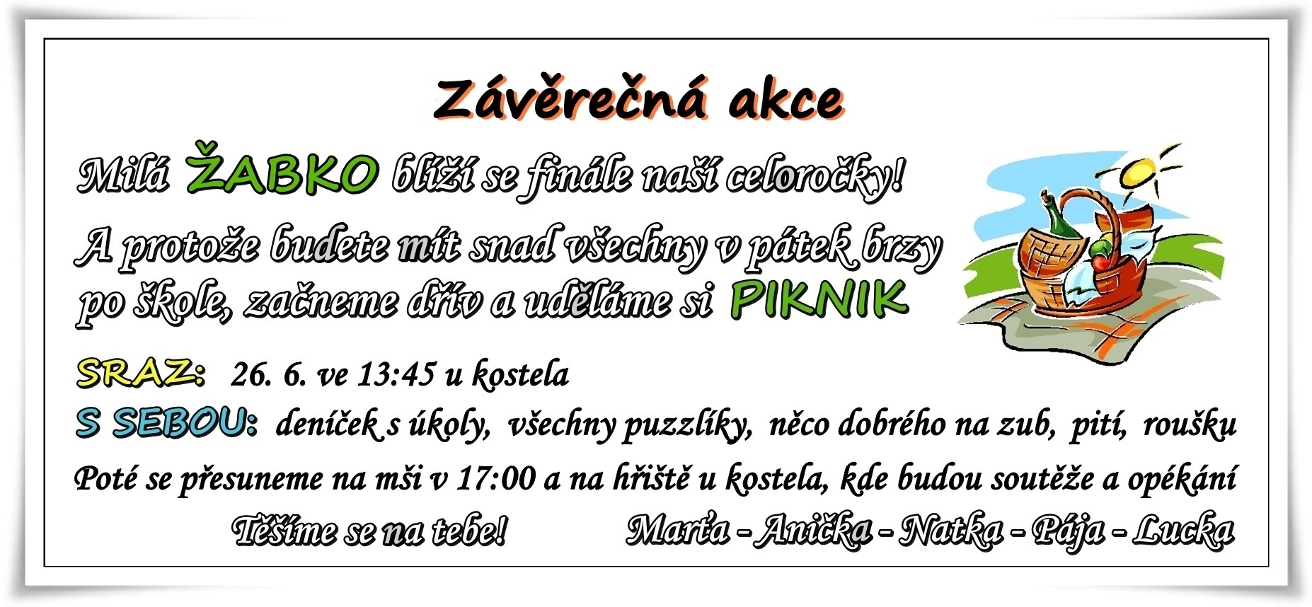 Máme tady pozvánku na příští schůzku Žabek. Není problém, pokud by některá z holek mohla přijít až později, stačí se ... pokračovat ve čtení