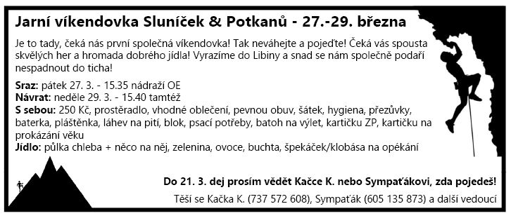 Tak i my přidáváme pozvánku na víkendovku a vidíte správně! Bude společná pro Sluníčka a Potkany! :-) ... pokračovat ve čtení