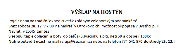 Po svátečním odpočinku a baštěním perníčků je čas si dát trošku do těla! Připojte se k nám na tradiční výpravě, ... pokračovat ve čtení